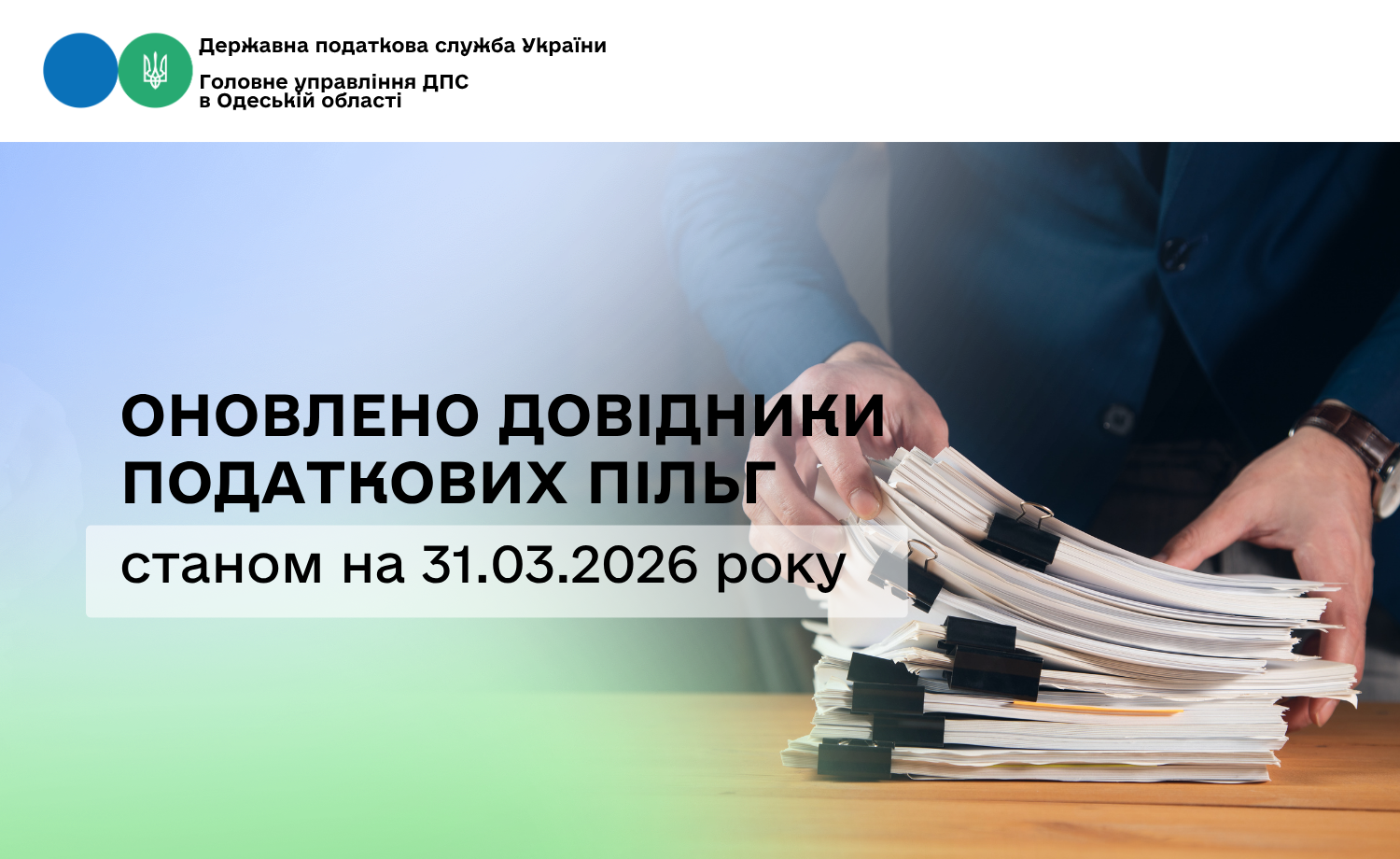 Головне управління ДПС в Одеській області звертає увагу, що на вебпорталі ДПС України оновлено станом на 31.03.2026 року: