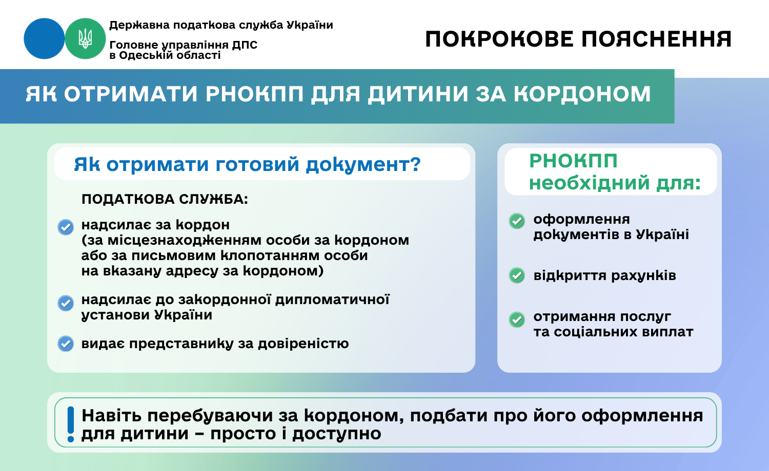 Тож навіть перебуваючи за кордоном, подбати про його оформлення для дитини – просто і доступно.