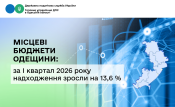 Місцеві бюджети Одещини: за I квартал 2026 року надходження зросли на 13,6 %