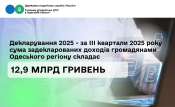 Протягом січня-вересня 2025 року до податкових органів Одеської області подано 11 891 декларацію про майновий стан і доходи. Загальна сума задекларованих доходів склала 12, 9 млрд грн, що майже на 2,2 млрд грн або 20 % більше, ніж за аналогічний період минулого року.