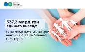 537,3 млрд грн єдиного внеску: платники вже сплатили майже на 22 % більше, ніж торік