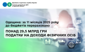 Одещина: за 11 місяців 2025 року до бюджетів перераховано понад 29,5 млрд грн податку на доходи фізичних осіб