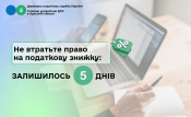 Головне управління ДПС в Одеській області звертає увагу, залишилося 5 днів, щоб скористатися правом на податкову знижку. До 31 грудня включно необхідно подати податкову декларацію про майновий стан і доходи для отримання компенсації частини коштів з бюджету.