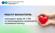 Спрощено форму Заяви № 1-РВ про включення або внесення змін до Реєстру волонтерів.