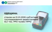 Станом на 01.01.2026 року 34 952 представника бізнесу Одещини зареєстрували 53 692 РРО та/або ПРРО.