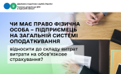 Таким чином, фізична особа – підприємець на загальній системі оподаткування мають право відносити до складу витрат витрати на обов’язкове страхування (страхових платежів, страхових внесків, страхових премій) за умови, що таке страхування пов’язане із веденням господарської діяльності (прямо пов’язане з виробництвом товарів, виконанням робіт, наданням послуг).
