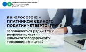 Головне управління ДПС в Одеській області повідомляє, що відповідно до п.п. 298.8.1 п. 298.8 ст. 298 Податкового кодексу України від 02 грудня 2010 року № 2755-VI (далі – ПКУ) сільськогосподарські товаровиробники для переходу або щорічного підтвердження статусу платника єдиного податку подають не пізніше 20 лютого поточного року, зокрема розрахунок частки сільськогосподарського товаровиробництва (далі – Розрахунок) за формою, затвердженою наказом Міністерства аграрної політики та продовольства України від 26.12.2011 № 772 «Про затвердження Розрахунку частки сільськогосподарського товаровиробництва» (далі – Наказ № 772).