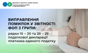 Отже, з метою виправлення помилок, самостійно виявлених у розділах VI (рядки 15 – 20) та VIII (рядки 26 – 29) уточнюючої Декларації платнику єдиного податку третьої групи необхідно подати уточнюючу Декларацію за такий самий звітний період з вірними показниками.
