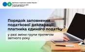 Отже, фізична особа – підприємець – платник єдиного податку (першої – третьої груп), яка протягом року самостійно прийняла рішення про зміну групи платника єдиного податку, в т. ч. з IV кварталу звітного року (незалежно від нової обраної першої – третьої групи платника єдиного податку), подає до контролюючого органу Декларацію наростаючим підсумком у строки, встановлені для квартального податкового (звітного) періоду, в якій заповнює відповідні розділи Декларації для відповідної групи платника єдиного податку, на якій перебував такий платник.