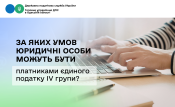 Головне управління ДПС в Одеській області інформує, що відповідно до п.п. 4 п. 291.4 ст. 291 Податкового кодексу України від 02 грудня 2010 року № 2755-VI (зі змінами, далі – ПКУ) до платників єдиного податку, які відносяться до четвертої групи – сільськогосподарські товаровиробники, належать юридичні особи незалежно від організаційно-правової форми, у яких частка сільськогосподарського товаровиробництва за попередній податковий (звітний) рік дорівнює або перевищує 75 відсотків.