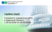 | 25.02.2026 10:00-12:00 | Про проведення кампанії декларування громадянами отриманих доходів | Щербіна Ольга Андріївна, головний державний інспектор Подільського відділу податків і зборів з фізичних осіб та проведення камеральних перевірок управління оподаткування фізичних осіб Головного управління ДПС в Одеській області (04862)42224 |