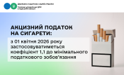 Акцизний податок на сигарети: з 01 квітня 2026 року застосовуватиметься коефіцієнт 1,1 до мінімального податкового зобов’язання