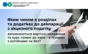 у графі 16 Додатка 1 прим. 3 та графі 10 Додатка 1 прим. 4 проставляються суми податкового зобов’язання з акцизного податку, нараховані за відповідним кодом товару згідно з УКТ ЗЕД, в гривнях з округленням до двох знаків після коми;