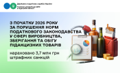 З початку 2026 року за порушення норм податкового законодавства у сфері виробництва, зберігання та обігу підакцизних товарів нараховано 3,7 млн грн штрафних санкцій