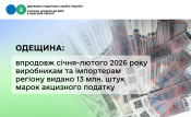 Одещина: впродовж січня-лютого 2026 року виробникам та імпортерам регіону видано 13 млн. штук марок акцизного податку