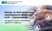Головне управління ДПС в Одеській області повідомляє, що відповідно до п.п. 2 п. 291.4 ст. 291 Податкового кодексу України від 02 грудня 2010 року № 2755-VI із змінами та доповненнями (далі – ПКУ) однією з умов перебування фізичних осіб – підприємців на другій групі платників єдиного податку є здійснення господарської діяльності з надання послуг, у тому числі побутових, платникам єдиного податку та/або населенню.