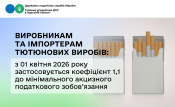 Оскільки у 2025 році частка акцизного податку в ціні сигарет становила 58,8 %, з 1 квітня по 31 грудня 2026 року коефіцієнт 1,1 зобов’язані застосовувати виробники та імпортери тютюнових виробів за кодами УКТ ЗЕД: